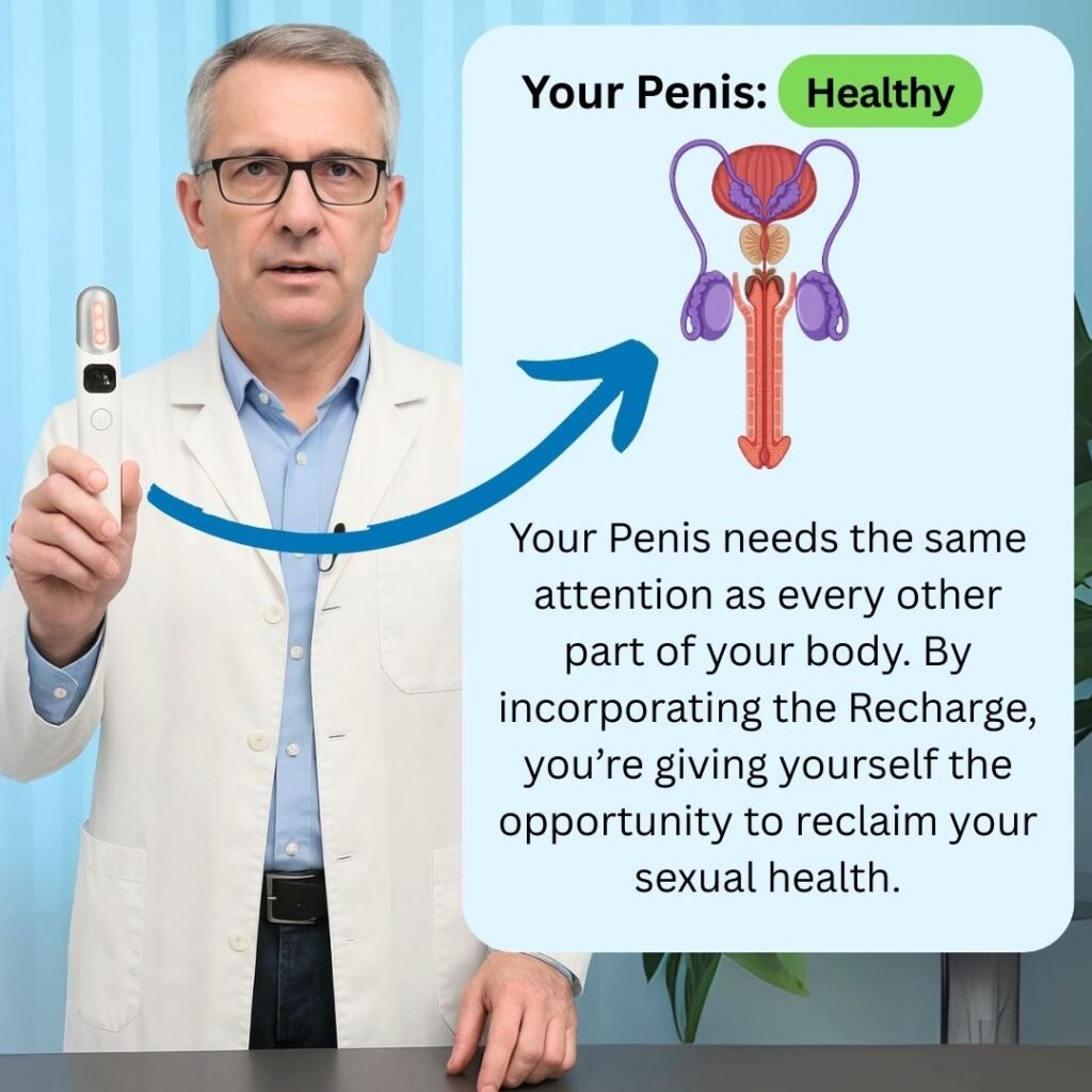 “Sexual performance issues aren’t just about hormones — they’re often linked to blood flow, tissue health, and nerve function. The Recharge addresses all three, naturally and without medication.” — Dr. A. Smith, Urologist